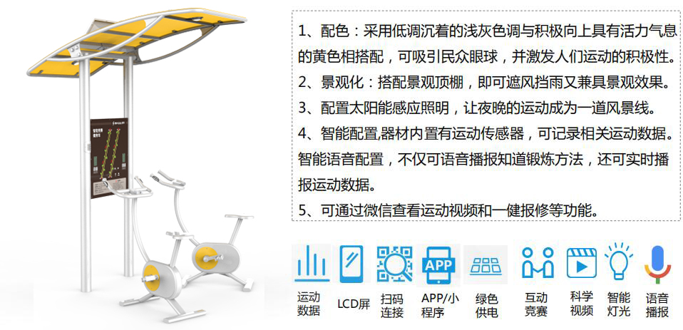 银河Galaxy全民健身产品涵盖健身路径、运动场馆、篮乒气羽排等产品,分为多个系列,先进的制造工艺、严苛的质量检测,确保产品性能优良、品质安全可靠,让运动简单科学。并将全民健身器材(户外路径器材、体育场馆等产品)进行智能化升级和互联,实现全人群覆盖、全场景智能,让运动赞美生活。
