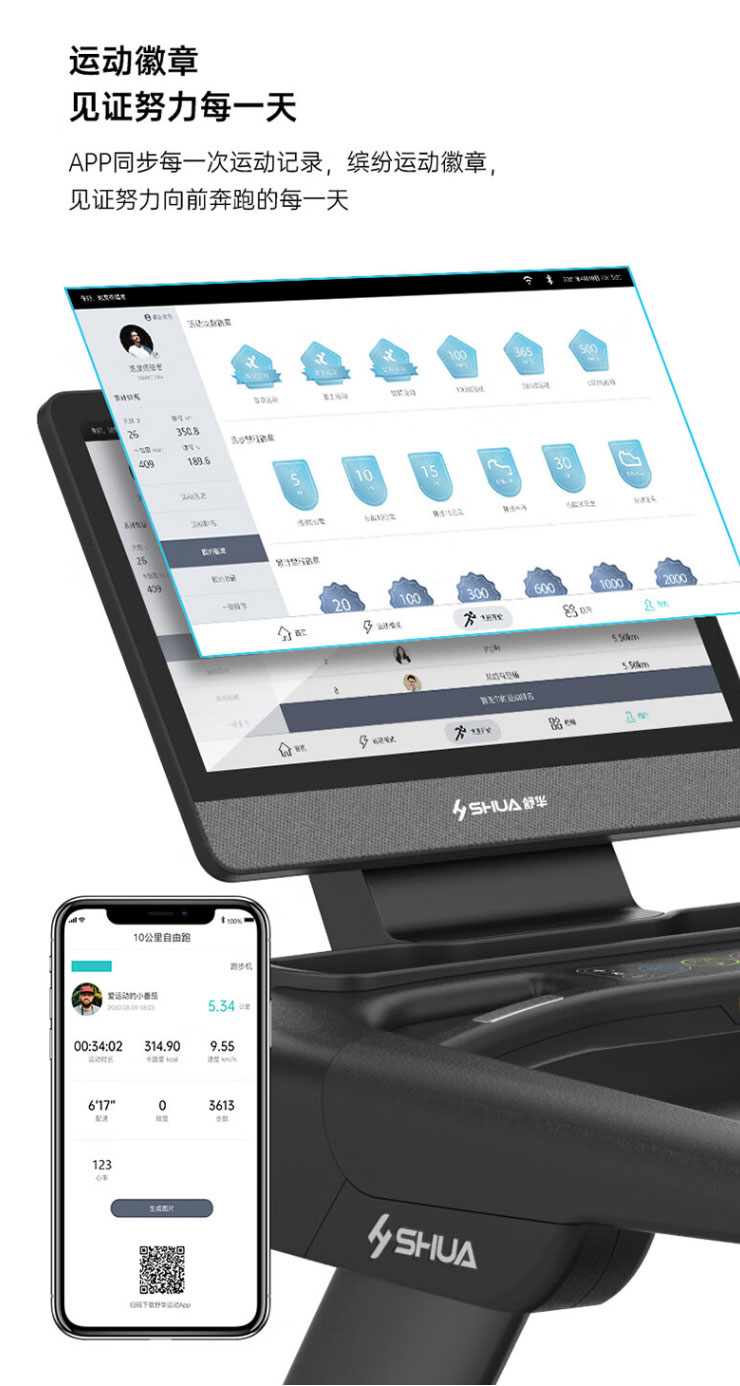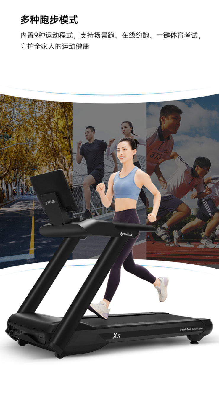 内置程序:搭载银河Galaxy跑步机系统3.0 :4种程式(5km 往返、间歇、登山、燃脂)+体育考试+倒计模式:时间/距离/ 卡路里+在线约跑+地图跑+银河Galaxy运动+应用软件