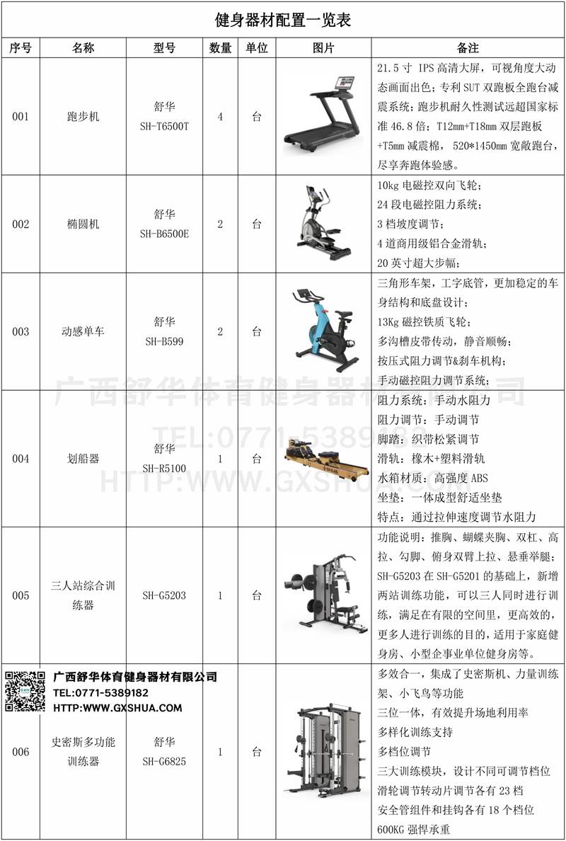 1.银河GalaxyX5 PRO高端跑步机SH-T6500T*4台-经典时尚造型配色,简约Z字车架造型,融合各种家居风格,彰显奢华运动质感;21.5英寸高清触控屏-传承动感美学,成就时代典型之作全新升级V3.0系统,支持系统在线升级,极大提升用户交互体验;专利减震跑台-采用SUT双层跑板、全跑台减震系统,且该减震科技获得国家专利,有效减少关节冲击,52cm宽跑台搭配精抽雏形滚筒,稳固不位移;F级马达动力强劲-5.0HP峰值马达,2.5HP持续输出,0~15%坡度调节,最高18km/h时速,胜任不同类型训练;内置9种运动程序,支持场景跑、在线约跑、一键体育考试。不仅可以跑步,还能实时记录运动数据,探索丰富健身课程,边学边跑,拓展运动边界,尽享奔跑体验感。
