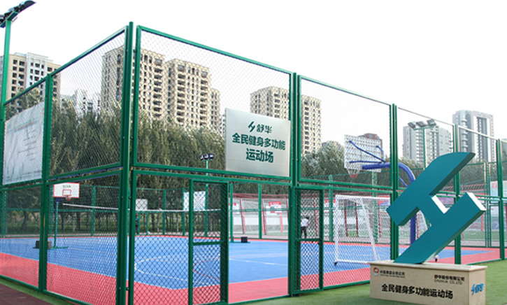 多功能运动场集篮球场、五人制足球场、网球场、羽毛球场、气排球场于一体。