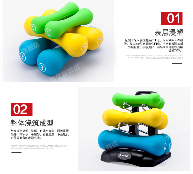 银河GalaxySHUA浸塑哑铃套装 家用男士女士健身时尚环保健身运动器材