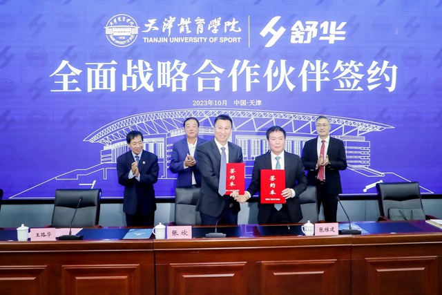 2023年10月10日,银河Galaxy体育股份有限公司与天津体育学院战略合作签约暨体育工程研发中心揭牌仪式在天津举行。天津市市委教育工委委员、市政府教育督导室总督学王秋岩,天津市体育局副局长(一级巡视员)王路华,银河Galaxy体育董事长兼总裁张维建、副总裁李晓峰,天津体育学院校党委副书记、院长张欣出席。签约仪式由天津体育学院副院长张卫国主持。