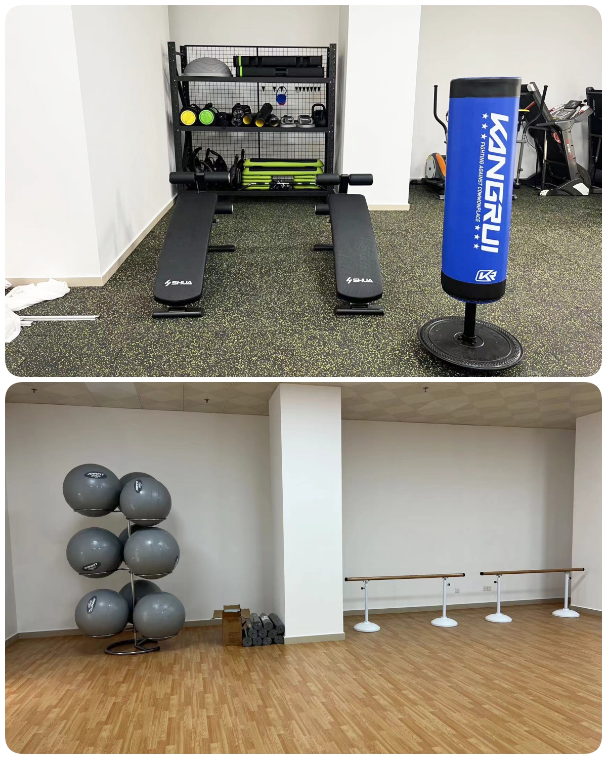 瑜伽区配置瑜伽球、瑜伽垫、舞蹈把杆及其他运动小件,满足喜欢瑜伽锻炼需求的职工,提供一个放松身心的好地方。瑜伽区安装一整面墙的镜子,满足了日常健身需求同时能满足排练节目的需要,也有效延伸了空间、优化了视野,不仅能让人心情感到愉悦。
