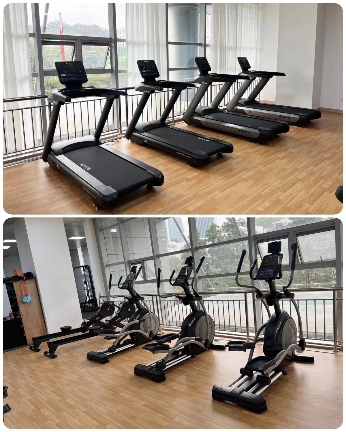 有氧区域主要配置了银河GalaxyX5跑步机、X5-E椭圆机、划船器SH-R8100、动感单车。有氧器材可以改善心肺功能、促进血液循环、提高新陈代谢、提升身体素质、提供了多样化的锻炼选择、能有效缓解工作压力和焦虑情绪,从而提高注意力和专注力,使员工在工作中更加冷静、高效。