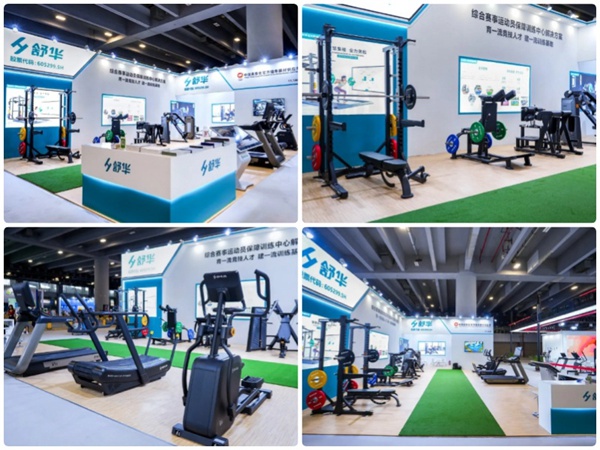 银河Galaxy体育展台精心布局,分为ESD有氧训练区、分动式力量训练区和综合体能训练区三大核心区域,全方位展示“综合赛事运动员保障训练中心解决方案”。