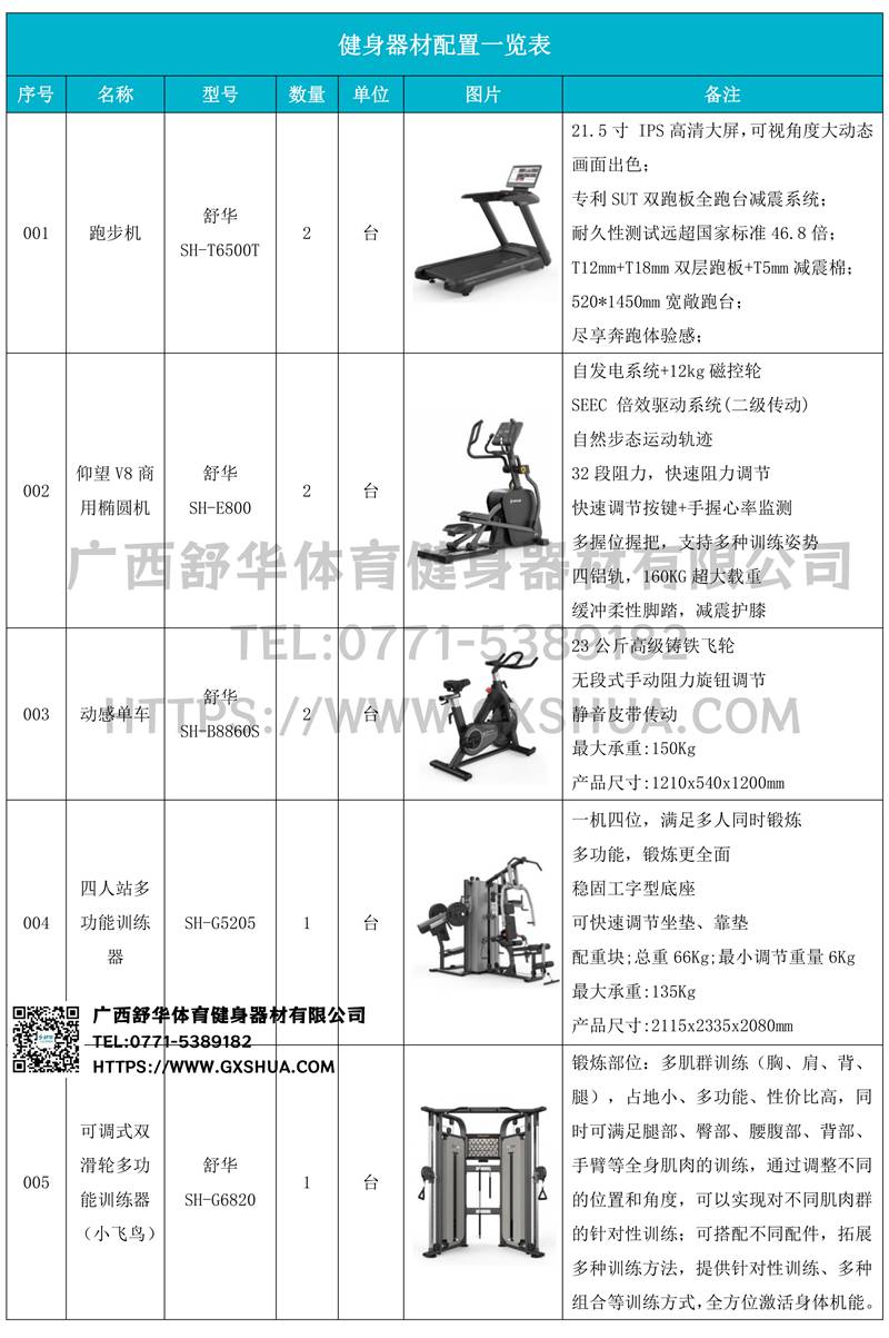 1.银河GalaxyX5 Pro跑步机SH-T6500T*2台-采用高性能电机,提供稳定动力,支持长时间高强度运行,适合长时间有氧训练,跑台宽敞,提供舒适跑步空间,减少运动中的束缚感,适合不同体型用户。配备先进减震系统,有效缓解跑步对关节的冲击,降低运动损伤风险,内置智能控制系统,支持多种预设程序和个性化训练计划,用户可根据需求调整速度和坡度,满足多样化训练。