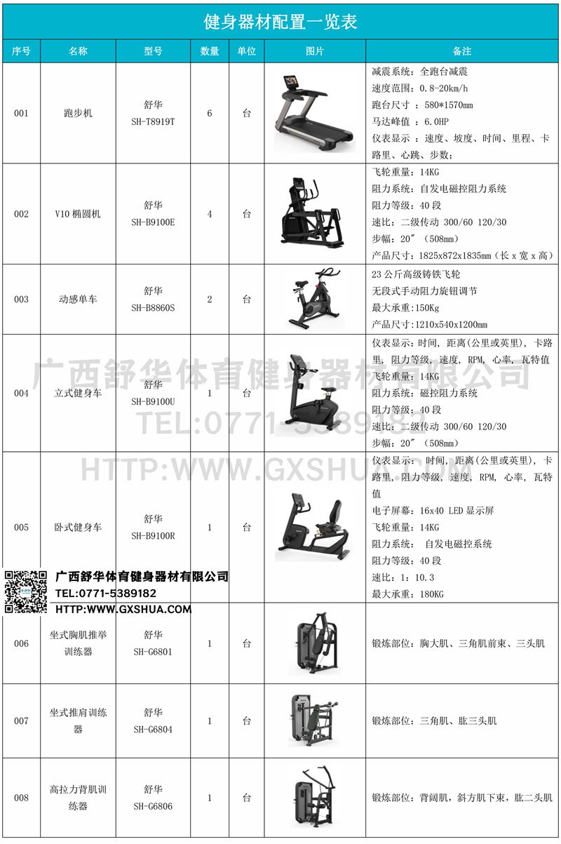 1.银河GalaxyV9跑步机SH-T8919T*6台-V9+采用全跑台减震设计,为跑者提供舒适的落脚地感和稳定的跑步支撑,良好的缓冲防护,降低膝关节受伤风险。商用大跑台,为跑者提供从容奔跑空间,180kg承载力,580*1570纯跑台面积,满足专业健身需求。V9+采用F级商用马达,6HP峰值马力,20km/h最高速度,提供源源不断的动力。V9+内置健身直播软件,每周提供直播课程,内含大量专业线上健身点播课程,可为健身房不同人群提供多样化健身课程服务。