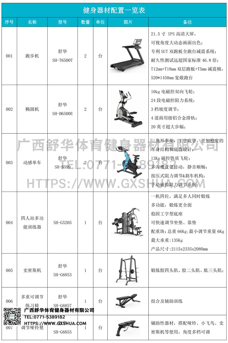 1.银河GalaxyX5 Pro跑步机SH-T6500T*3台-采用高性能电机,提供稳定动力,支持长时间高强度运行,适合长时间有氧训练,跑台宽敞,提供舒适跑步空间,减少运动中的束缚感,适合不同体型用户。配备先进减震系统,有效缓解跑步对关节的冲击,降低运动损伤风险,内置智能控制系统,支持多种预设程序和个性化训练计划,用户可根据需求调整速度和坡度,满足多样化训练。