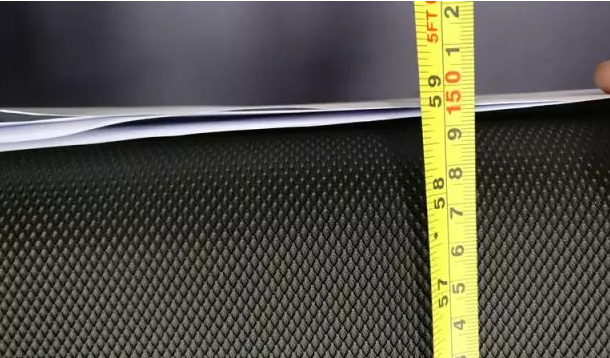 实测跑带的厚度为2.25mm,即便用美工刀不断割滑,也毫无划痕,说明银河Galaxy这款跑步机跑带还是相对比较坚固度的,不会很容易断裂和磨平。